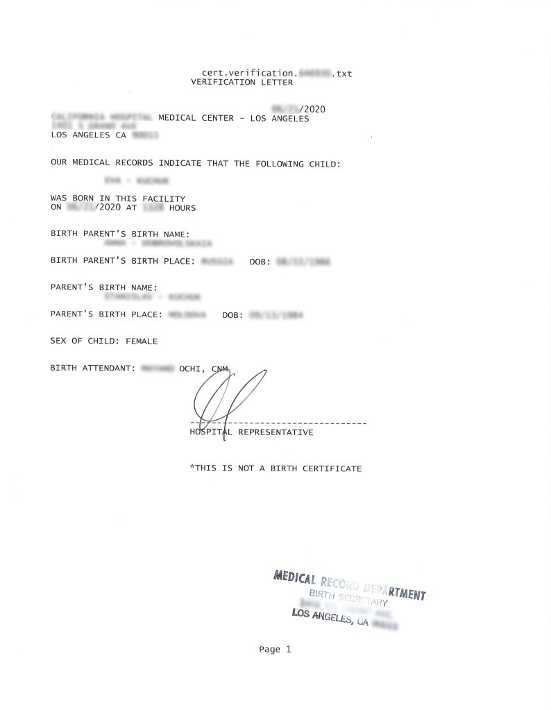 Данная инструкция описывает процесс в Лос-Анджелесе, Калифорния. По рождению вам в госпитале дадут бумагу, в которой будет информация, куда обращаться за Свидетельством о Рождении. Следуйте инструкции из госпиталя.