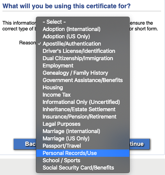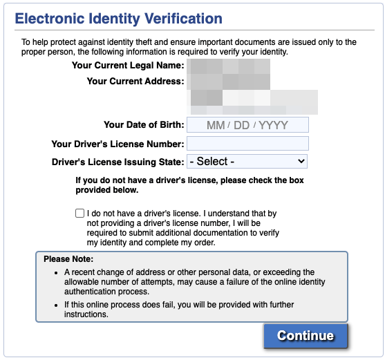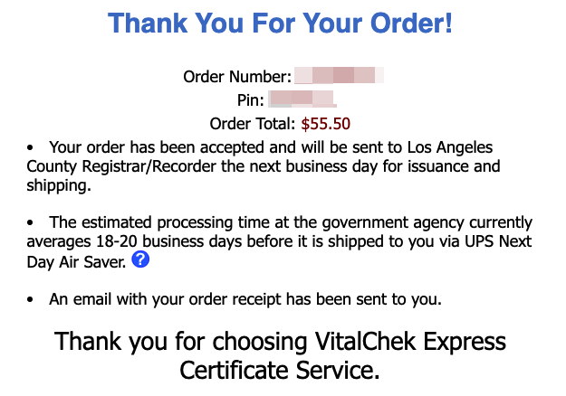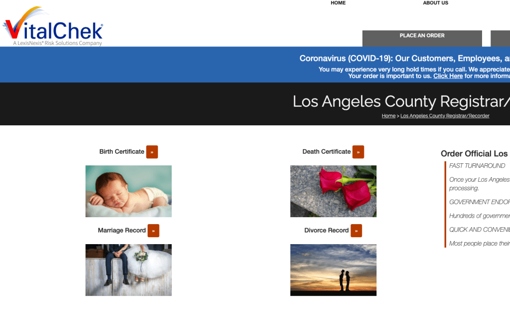 - Выбрать www.vitalchek.com (так как именно эта организация является главным посредником)